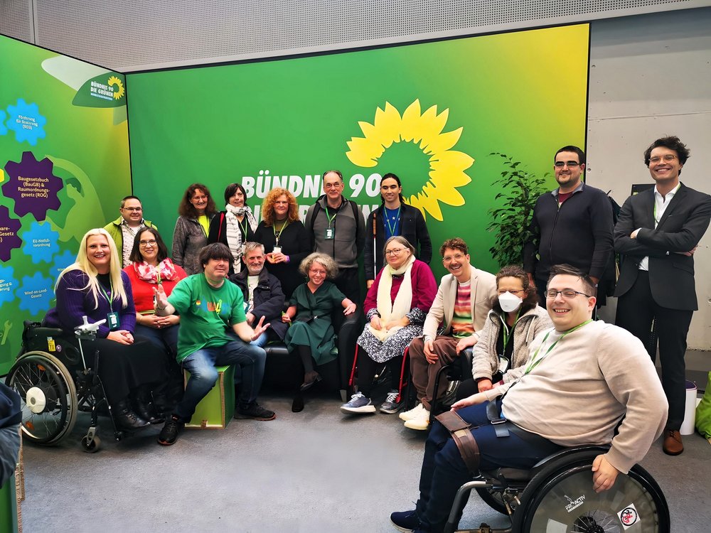 Vier anstrengende Tage liegen hinter dem Sprecher*innen-Team der BAG Behindertenpolitik und eine Grüne Bundesdelegiertenkonferenz mit Licht und Schatten. Auf der Habenseite: Wir haben fast all unsere Änderungsanträge mehr oder weniger ins Europawahlprogramm verhandelt. Das von uns organisierte Gruppenfoto von Menschen mit Behinderung hat für Sichtbarkeit gesorgt. Und mit Katrin Langensiepen auf dem sicheren Listenplatz 7 haben wir auch weiterhin eine starke Stimme für unsere Themen im Europaparlament.
